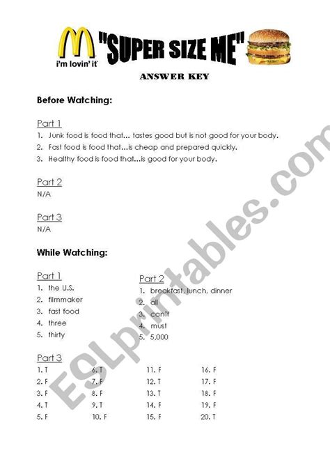 Reading Online SUPER SIZE ME WORKSHEET ANSWER KEY mobipocket ManyBooks